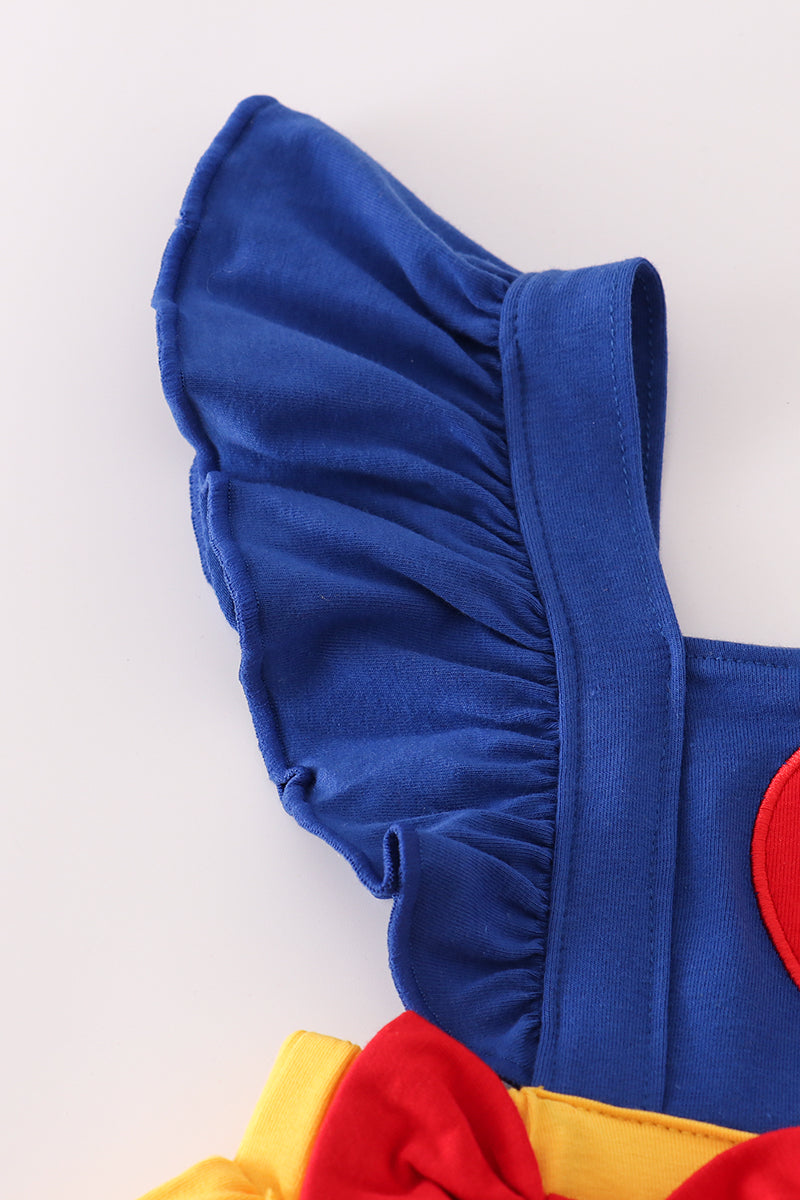 Apple embroidery bow ruffle shorts set