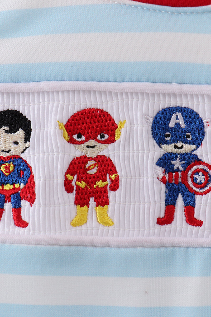 Blue character embroidery stripe romper